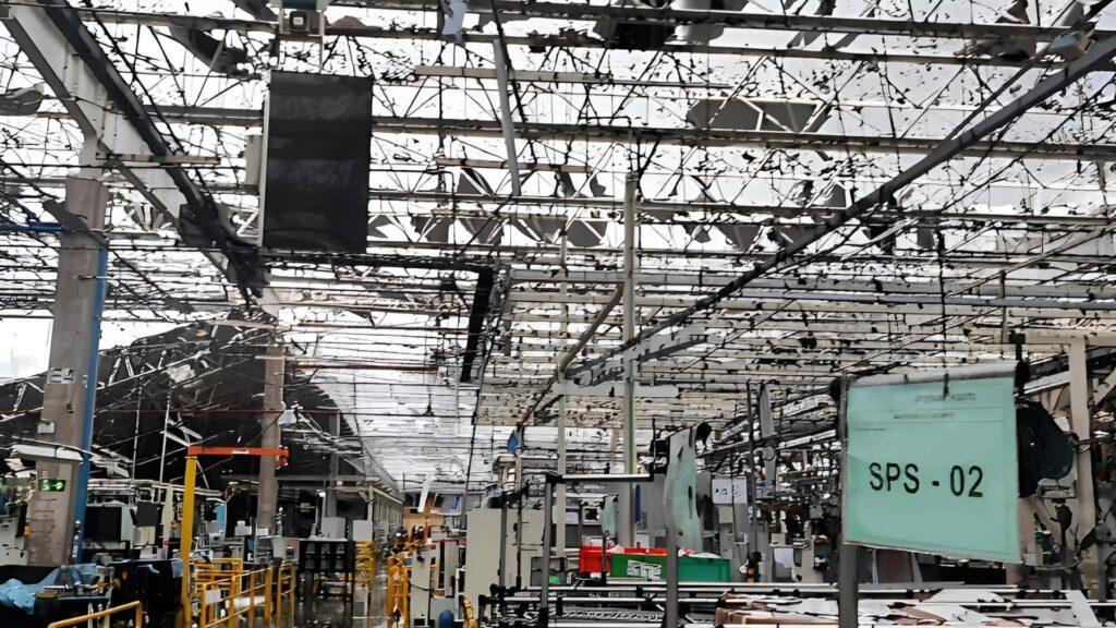 Partes do telhado foram arremessadas por diferentes áreas do complexo industrial, que abastece a produção de modelos como Corolla, Corolla Cross e Yaris — este último em fase de transição para o Yaris Cross.