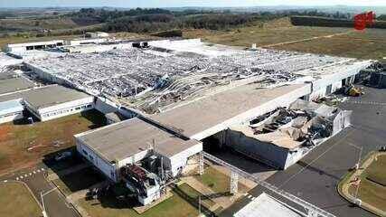 Vídeos e imagens que circulam nas redes sociais mostram a força dos ventos, que arrancaram a estrutura metálica do telhado e lançaram partes do galpão pelo complexo industrial. O local ficou parcialmente alagado e danificado. Registros também mostram funcionários deixando a fábrica logo após o vendaval.