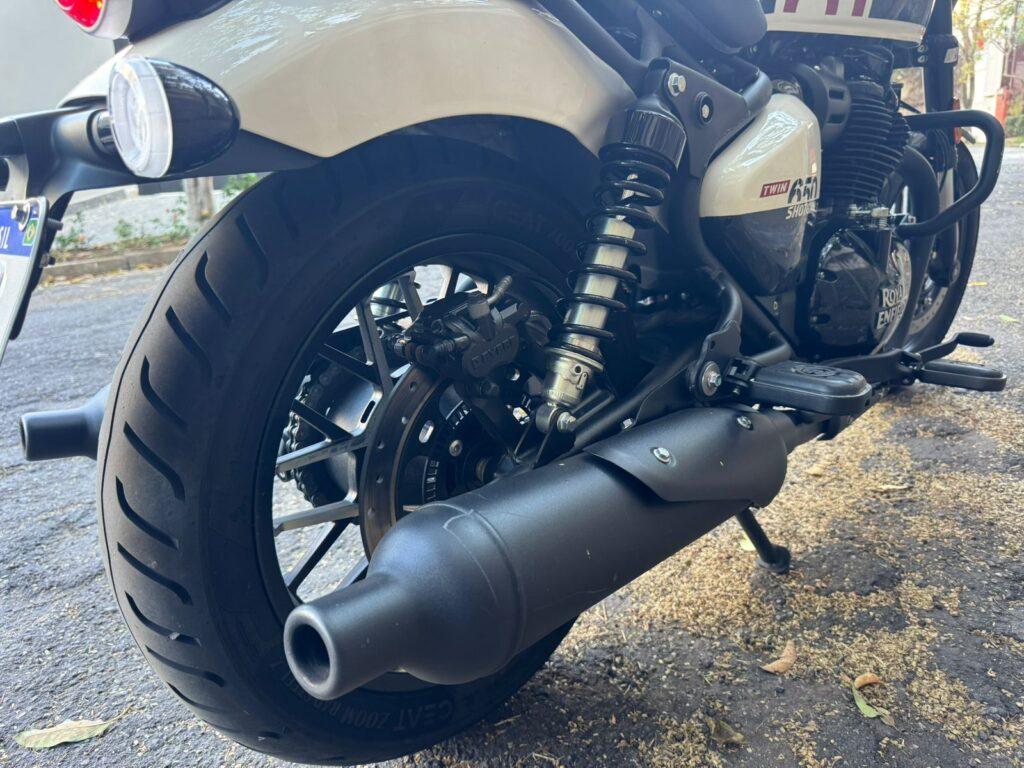 Embora compartilhe a mesma base e o mesmo motor da Super Meteor 650, a Shotgun traz diferenças importantes.
