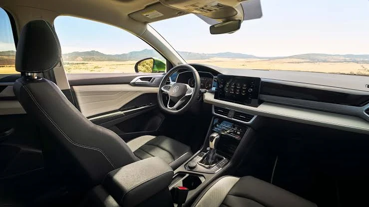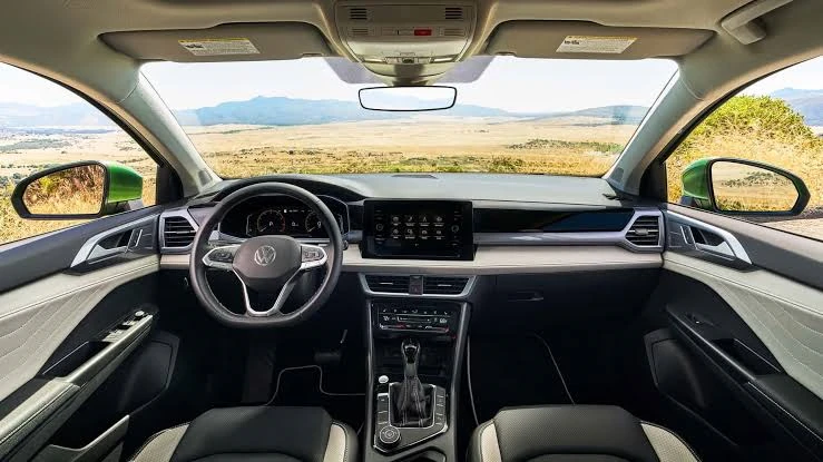 O Taos 2026 adota o mesmo padrão visual visto no Jetta reestilizado, com painel redesenhado e multimídia flutuante em posição mais alta.