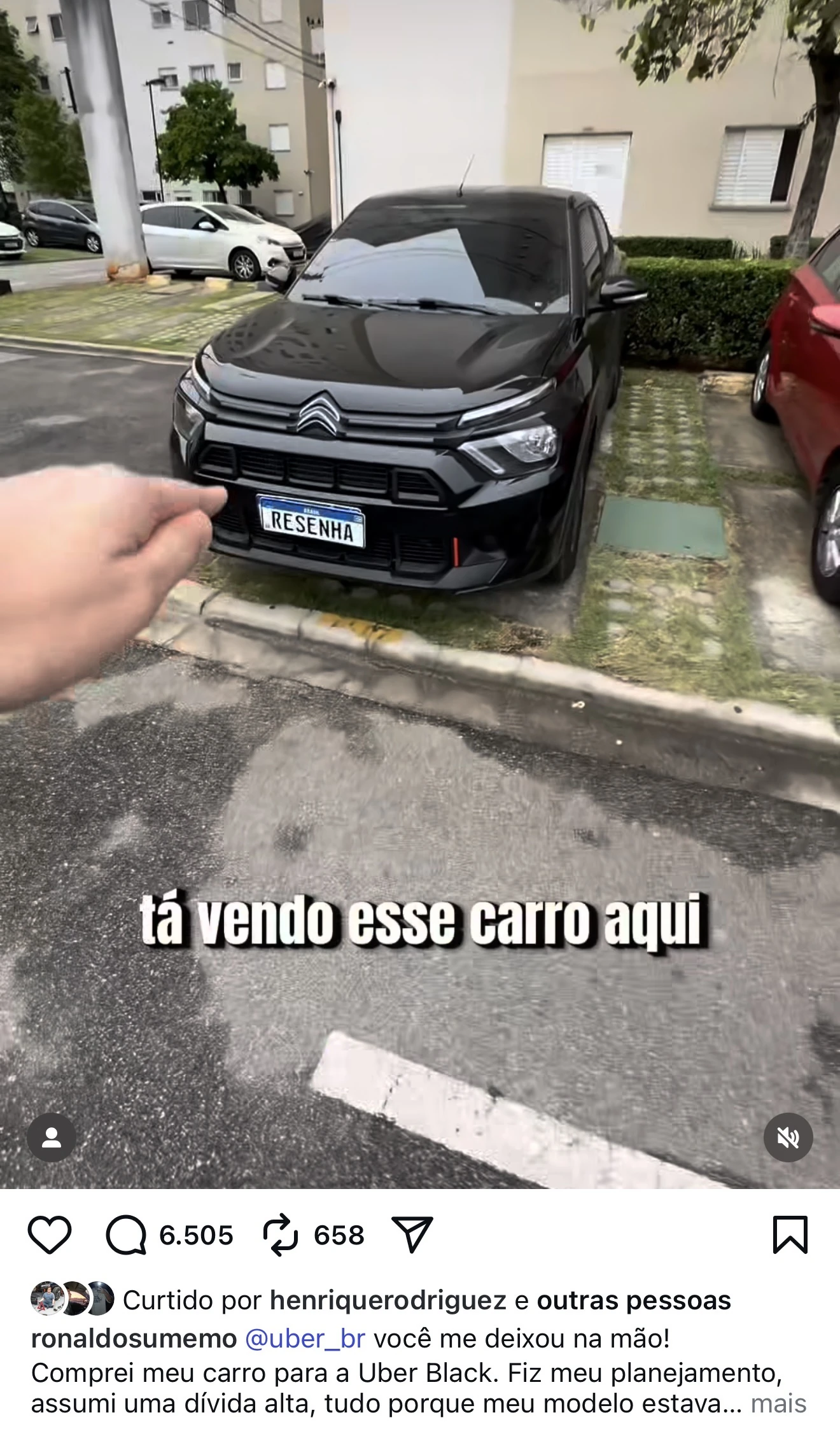 Um dos casos mais comentados foi o do motorista Ronaldo Lopes, que publicou um vídeo mostrando o Citroën Basalt adquirido recentemente para atuar na categoria Black. O conteúdo viralizou e somou mais de 24 mil curtidas apenas em seu perfil, sendo replicado por diversas páginas de motoristas de aplicativo.
