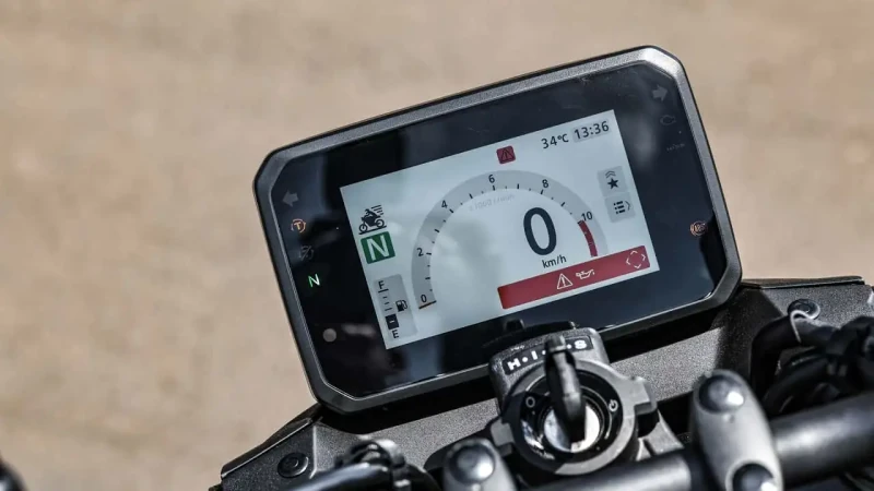 No painel, a tela TFT colorida de 5 polegadas apresenta boa visibilidade e permite gerenciar facilmente as funções eletrônicas. A iluminação é full-LED, e há pisca com cancelamento automático e o sistema ESS (Emergency Stop Signal), que aciona o alerta em frenagens bruscas.