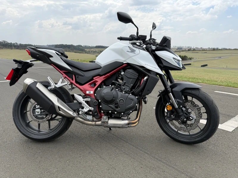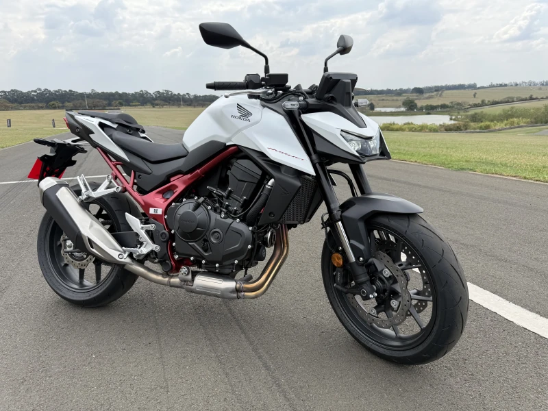 Durante os testes em pista particular, a CB750 Hornet mostrou-se ágil nas trocas de direção e precisa nas retomadas. A suspensão bem calibrada e o câmbio com engates curtos favorecem o uso urbano e também divertem em condução esportiva. O painel, de leitura fácil, e a ergonomia equilibrada reforçam a vocação da moto para o dia a dia.