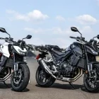Os freios a disco duplo de 296 mm na dianteira e simples de 240 mm na traseira, ambos com ABS, trabalham em conjunto com pneus 120/70 R17 na frente e 160/60 R17 atrás. As dimensões incluem 2.093 mm de comprimento, 872 mm de largura, 1.084 mm de altura e entre-eixos de 1.421 mm, com 141 mm de vão livre e assento a 795 mm do solo.