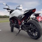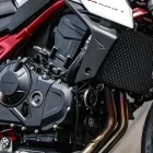 Embora eficiente, o motor nacional é menos potente que o europeu — lá, a Hornet chega a 89 cv. A diferença se deve ao ajuste para atender às normas de emissões e ruído no Brasil, que são mais rigorosas e feitas em ambiente fechado, o que exigiu da Honda um remapeamento de performance. Ainda assim, o torque em baixas rotações é vigoroso e garante respostas rápidas ao acelerar.