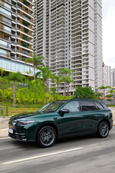 O Leapmotor C10 é um SUV médio com design aerodinâmico, faróis e lanternas em LED e interior de estilo minimalista, com poucos botões. O modelo oferece mais de 20 porta-objetos, assento traseiro sem túnel central e porta-malas de 435 litros. A central multimídia tem tela de 14,6 polegadas e o teto é panorâmico.