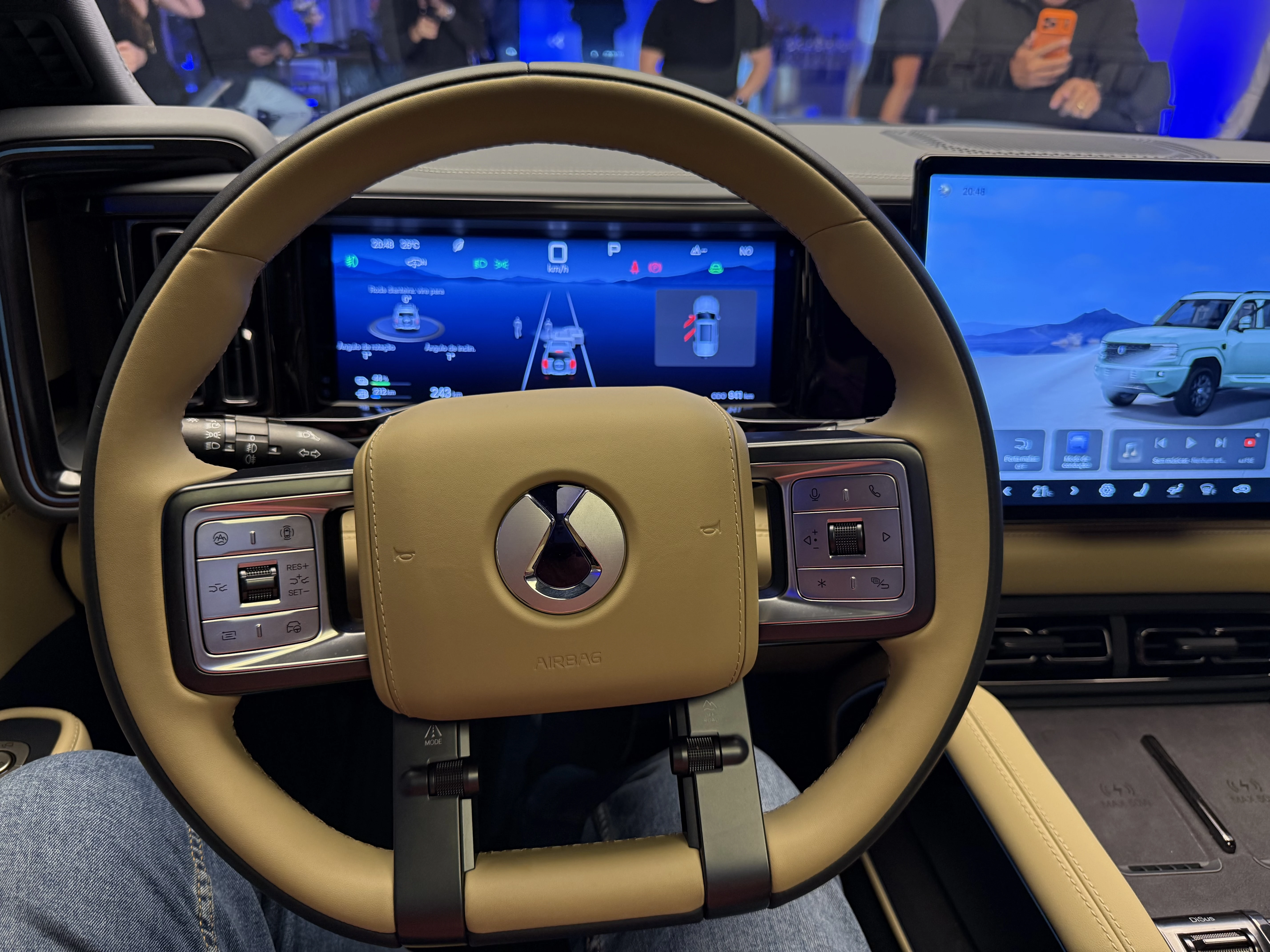 Por dentro são 3 telas com painel de 12,3”, head Up display de 5” e multimídia de 15,6 além de tela adicional para o passageiro de 12,3”.