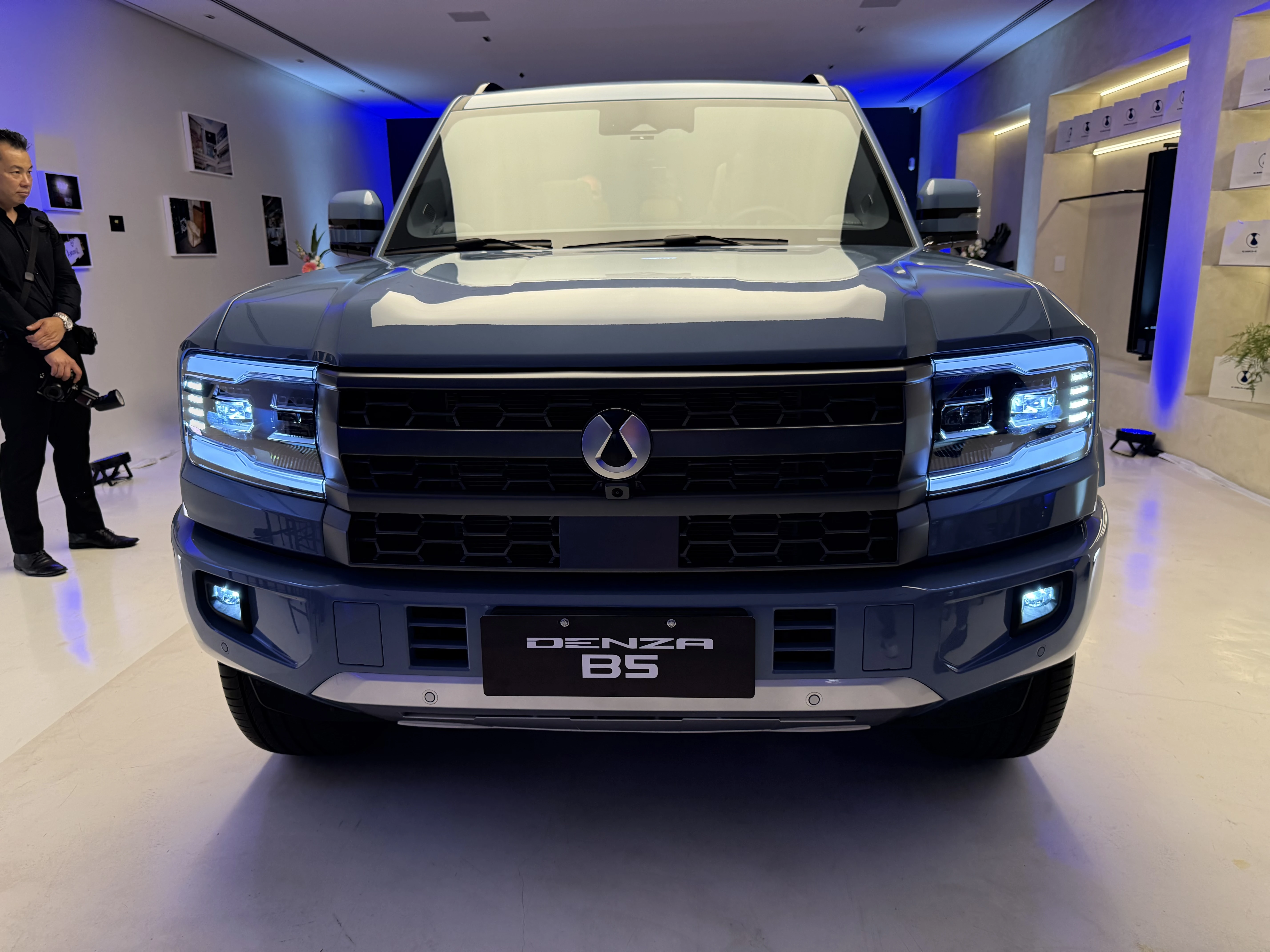 O primeiro carro da linha Denza a chegar ao país é o SUV B5. Com visual tradicional o Denza B5 tem perfil quadrado e itens como bancos em couro legítimo com 10 tipos de massagem, som Devialet com 18 alto falantes, geladeira entre outros.
