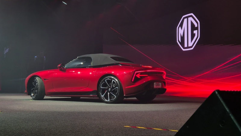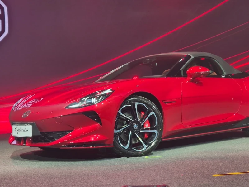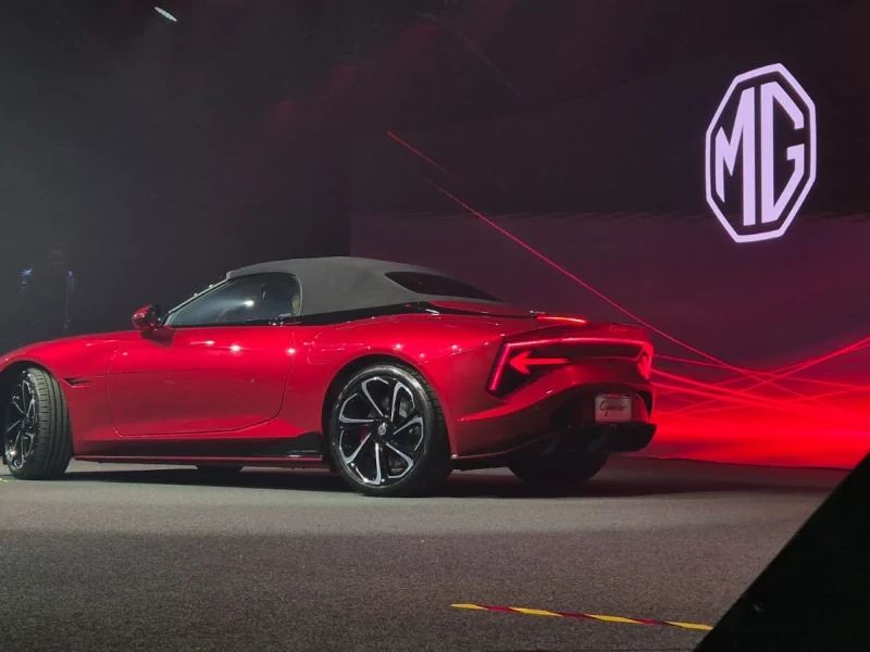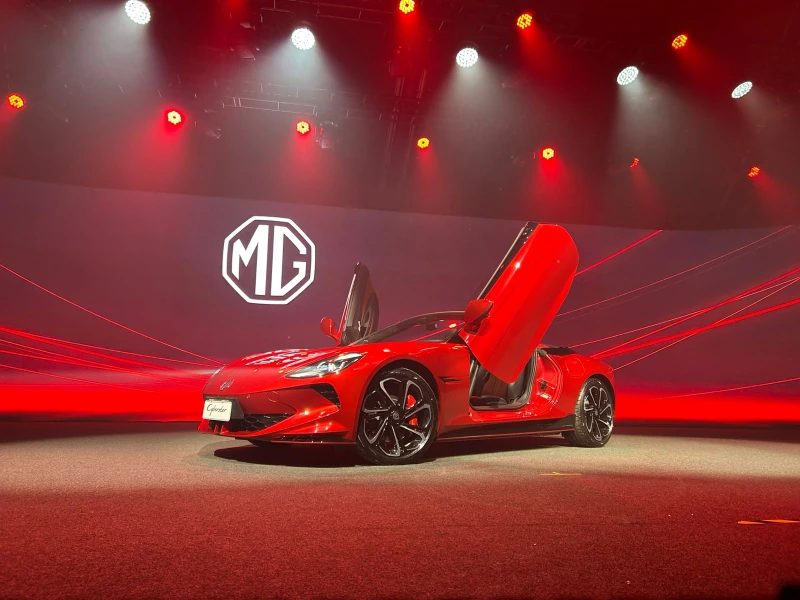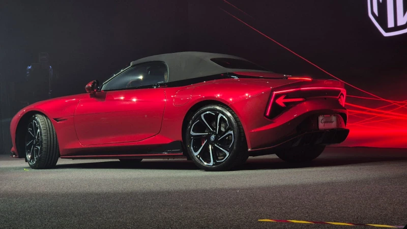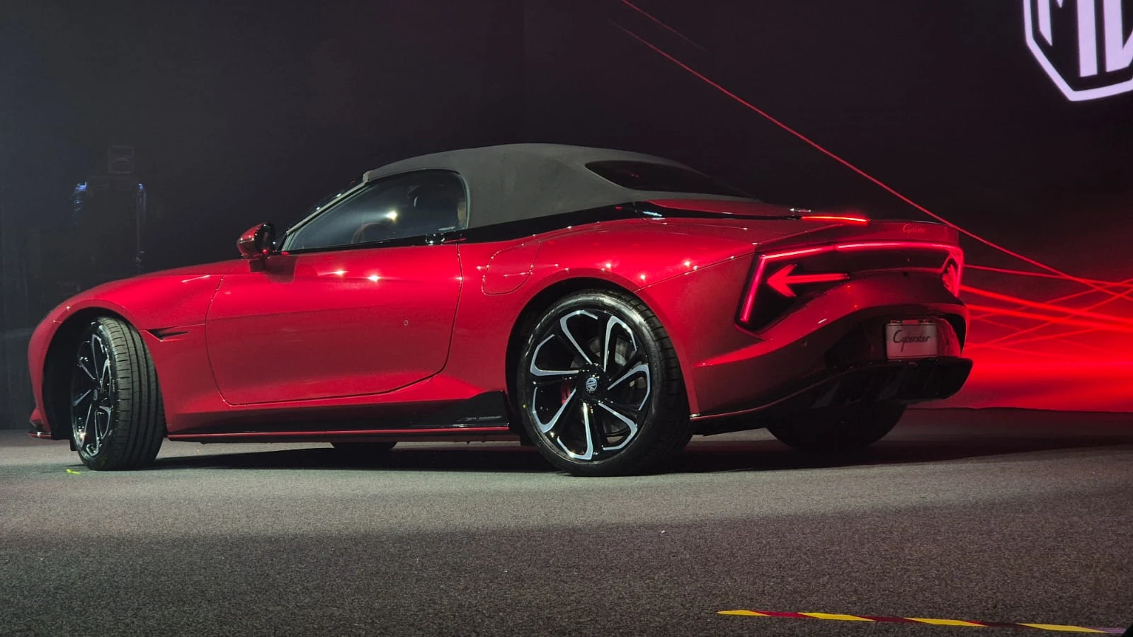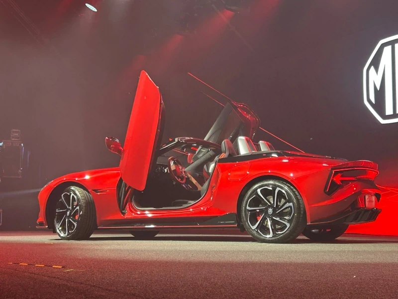 O MG Cyberster é um conversível com portas tipo tesoura, interior em suede e três telas internas.