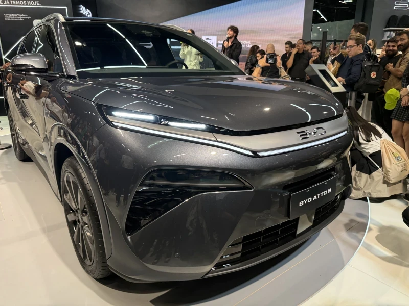 A BYD apresentou esta noite no Salão do Automóvel de São Paulo o Atto 8. O SUV de sete lugares tem GTS de porte e motor híbrido plugin com 488cv ao combinar motor 1.5 turbo a gasolina com dois motores elétricos por R$ 399 mil em versão única.