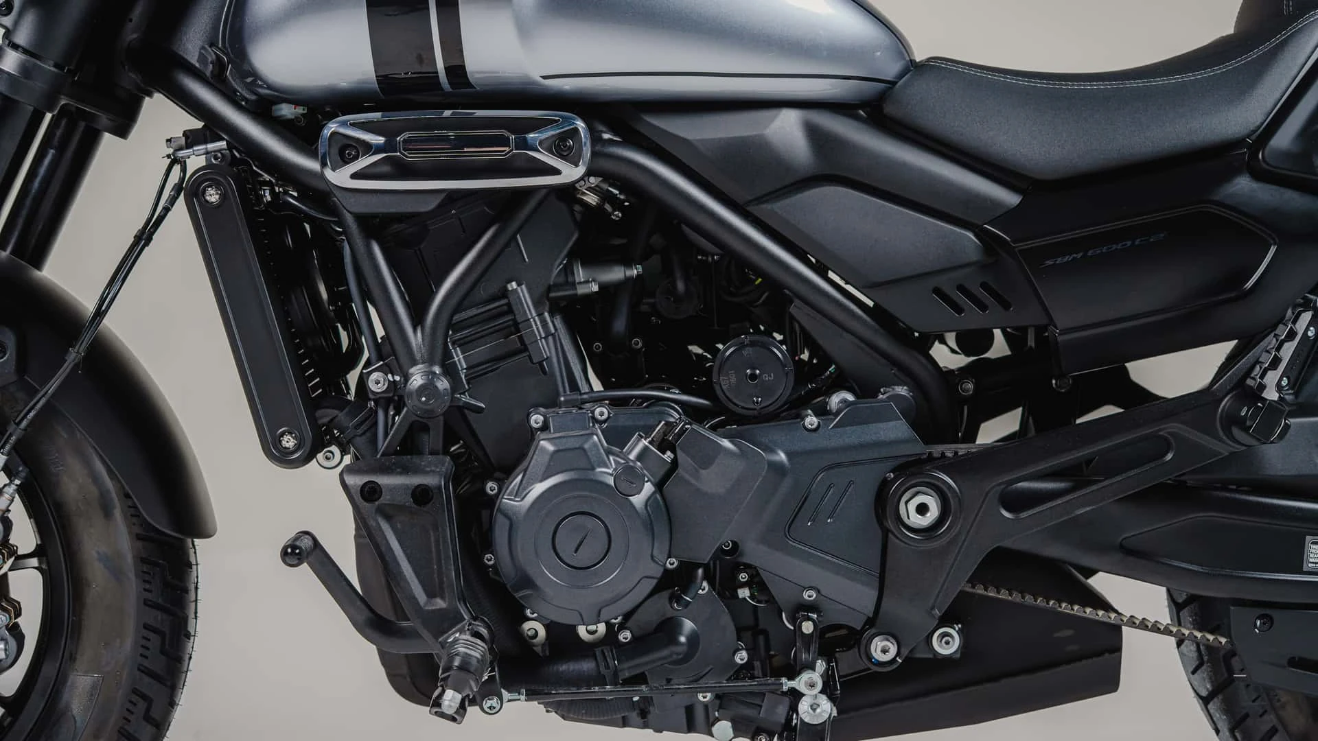 Com visual retrô e moderno a SBM 600 terá Motor bicilíndrico de 554 cm³ com 56,1 cv a 10.500 rpm e torque de 5,5 kgf·m a 5.500 rpm. Câmbio de seis marchas e transmissão final por correia bem como embreagem assistida e deslizante fazem parte do conjunto.
