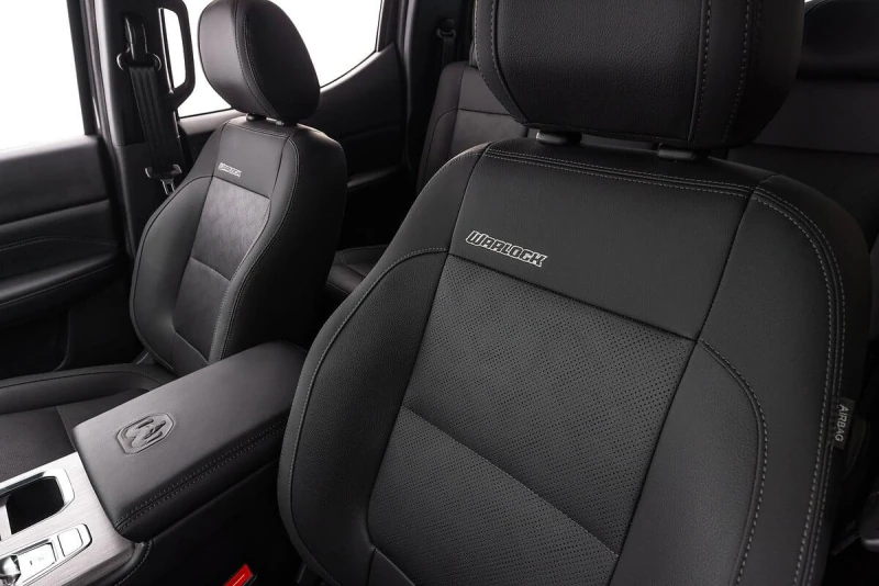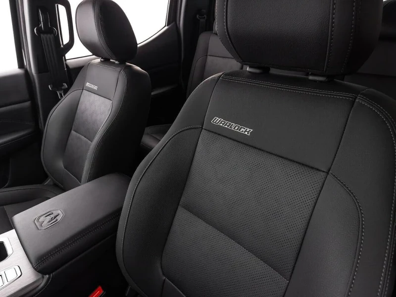 A versão Warlock abre mão de acabamentos cromados e usa grade, retrovisores e detalhes estéticos na cor cinza. Tem grade cinza bem como acabamento dos retrovisores, além de revestimento de teto preto e santantonio (RAM Bar) tubular. Confira os itens de série:
