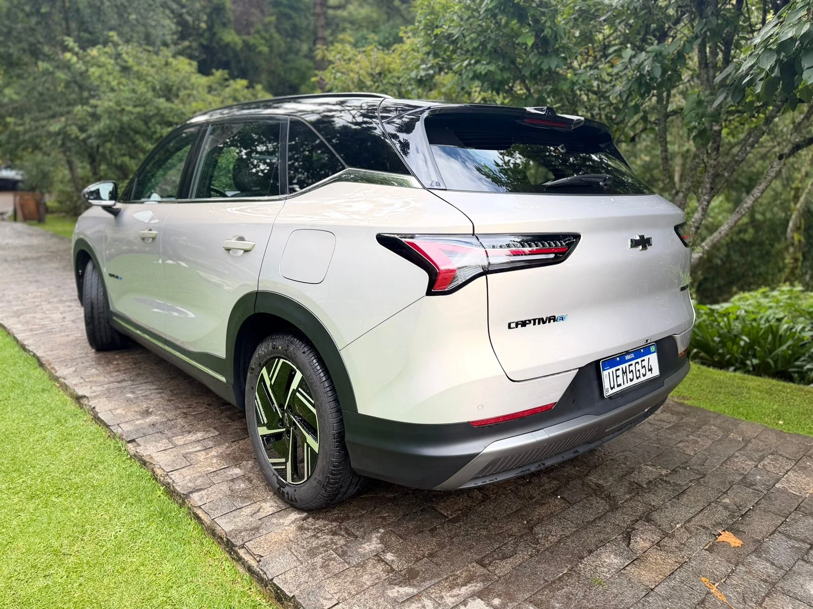 Ao vivo, o Captiva EV aparenta porte maior do que sugerem as imagens. São 4,74 metros de comprimento, 1,89 metro de largura e 2,80 metros de entre-eixos, números que garantem bom espaço interno. A traseira adota lanternas horizontais com desenho futurista, alinhadas à proposta global dos elétricos da marca.