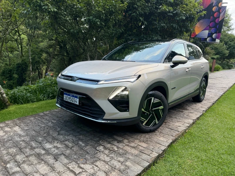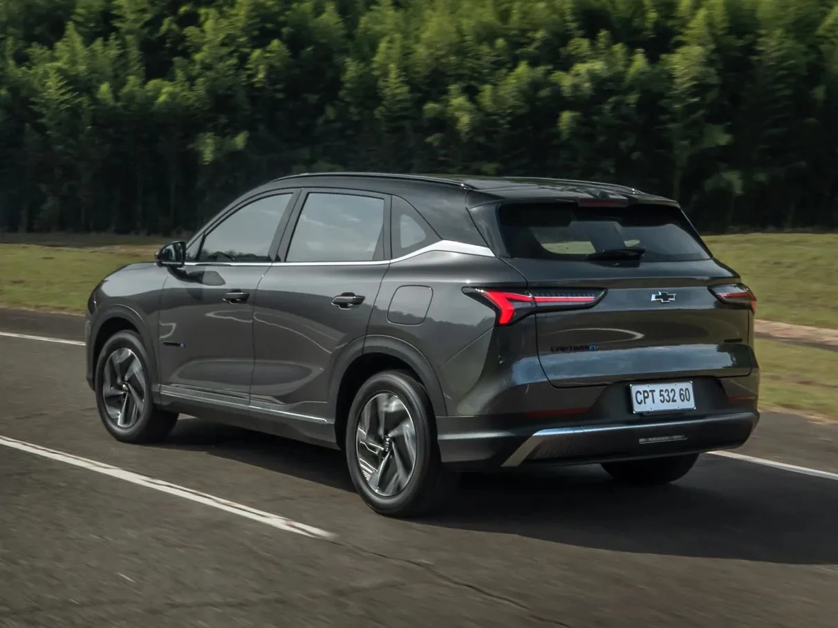 Visualmente, o SUV adota linhas fluidas, com identidade próxima ao Equinox EV, grade fechada e assinatura luminosa que reforça o caráter elétrico, mantendo o emblema tradicional da Chevrolet.