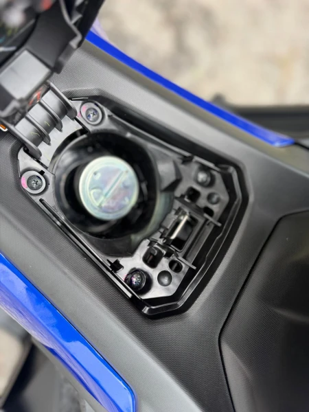 O painel 100% digital em estilo Blackout exibe informações de ABS, Stop & Start, Smart Key, VVA, ECO e temperatura do motor. Há ainda porta-objetos com tampa e tomada USB-C na carenagem frontal. O sistema Smart Key dispensa chave física e o Answer Back facilita a localização da scooter.
