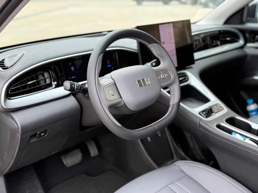 Por dentro o painel digital de 8,8” e a central multimídia de 14,6”, é a mesma. Ainda que os bancos de couro sejam idênticos, somente na versão mais cara é possível optar por revestimento mais claro.