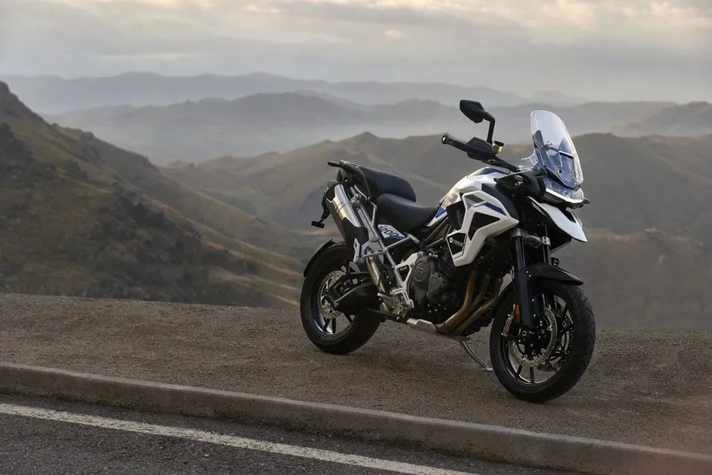 Na Tiger 900, as edições especiais partem das configurações GT Pro (Alpine) e Rally Pro (Desert). Entre os diferenciais estão o escapamento Akrapovič de série — item inédito na linha adventure da marca — além de proteções adicionais e opções de banco aquecido ou com altura reduzida.