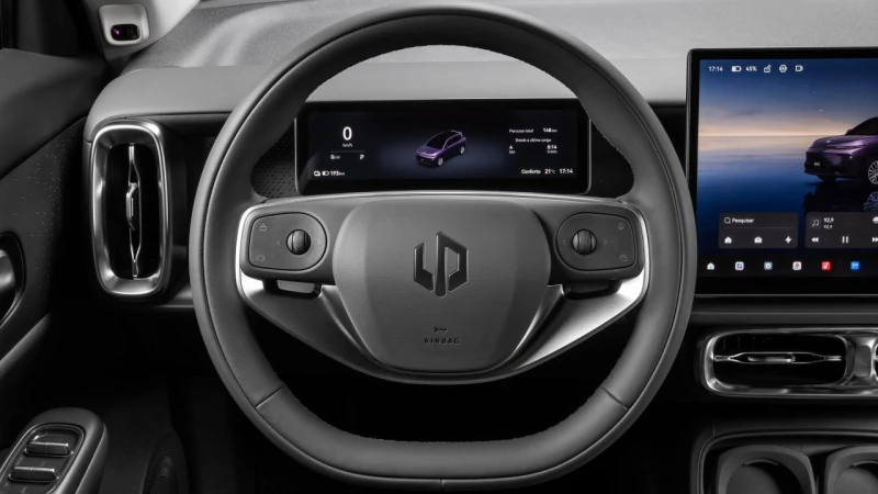 A bateria tem capacidade de 56,2 kWh e proporciona autonomia de até 288 km, conforme medição no padrão PBEV do Inmetro. O modelo utiliza a arquitetura elétrica Leap 3.5, projetada para reduzir massa, aumentar eficiência energética e simplificar o conjunto estrutural.