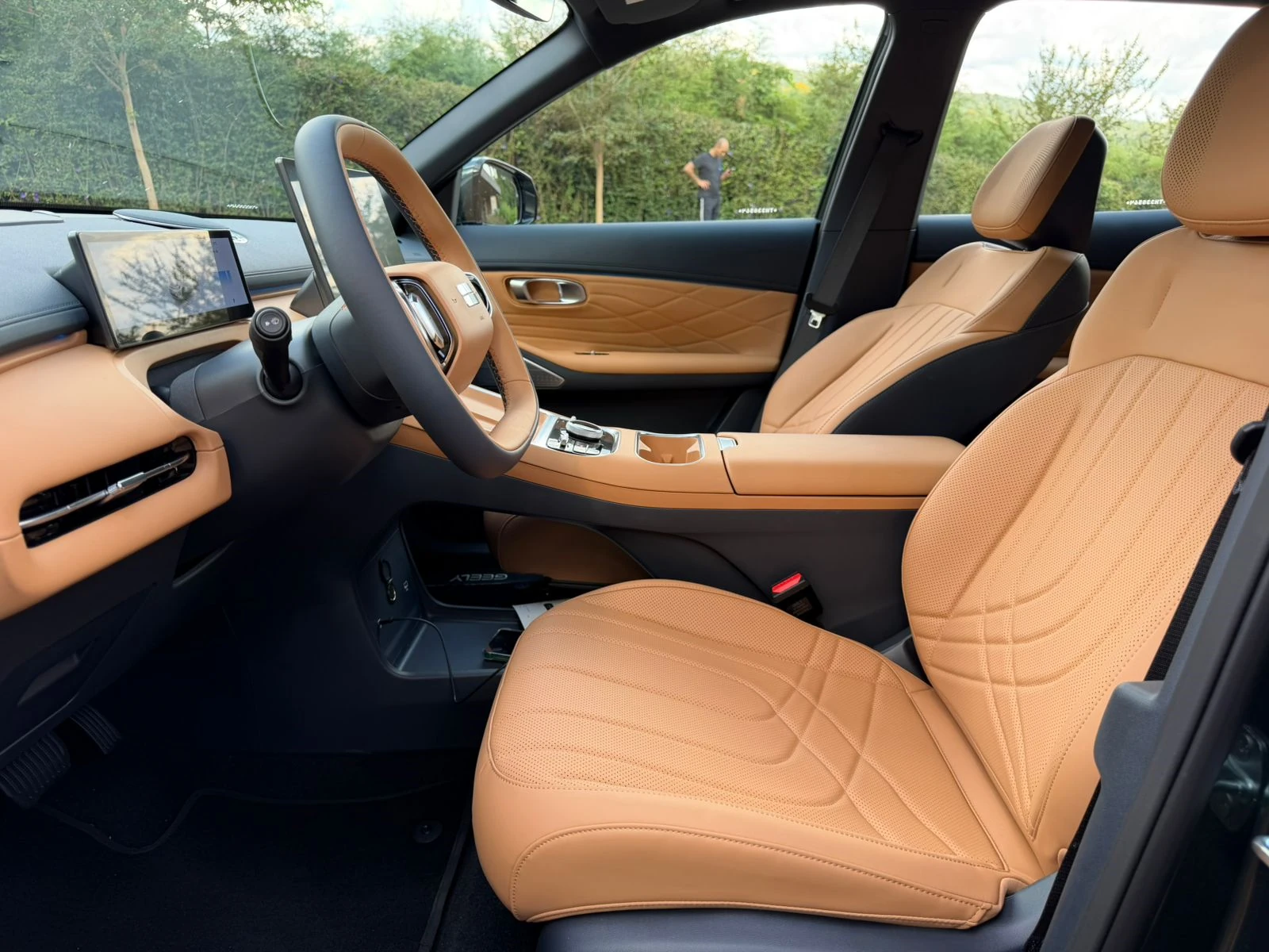 A autonomia em modo elétrico pode chegar a 120 km, enquanto o alcance total atinge até 1.300 km, posicionando o EX5 EM-i entre os híbridos com maior alcance do mercado.