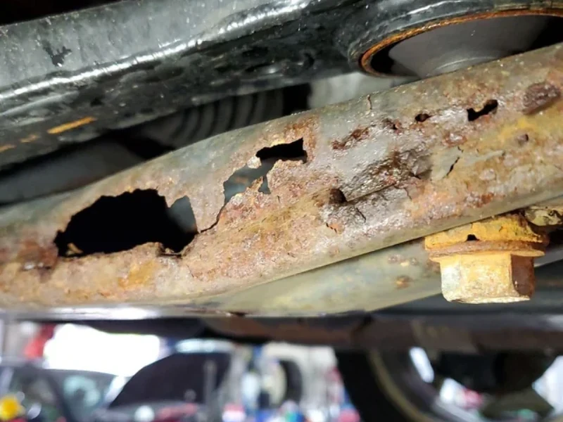 • Escapamento: peças novas em excesso, desalinhadas ou com suportes improvisados podem indicar troca após batida. Em carros com alguns anos de uso a troca de um escapamento podem indicar que o carro foi batido